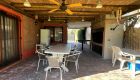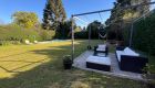 Galería con parrilla, pileta 8x4 con arco romano, venecitas, iluminación, gran Jardín