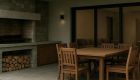 Elegante galería con parrilla, revestida en piedra natural y detalles en madera, pensada para encuentros sociales y momentos de relax al aire libre.