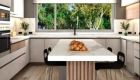 La cocina, moderna y funcional, cuenta con isla central, grifería FV, lavadero independiente y acceso de servicio.